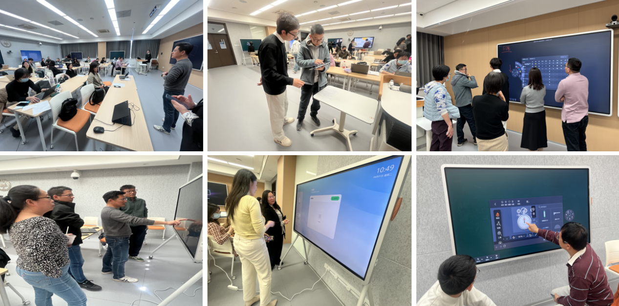 参加培训的教师们踊跃参与了互动研讨和实操演练的活动,很快掌握了智慧教室设备的操作方法以及创新教学模式的应用技巧,并亲身体验了信息化工具为教学带来的便利与革新,对人工智能如何助力课堂教学有了更深入的理解。