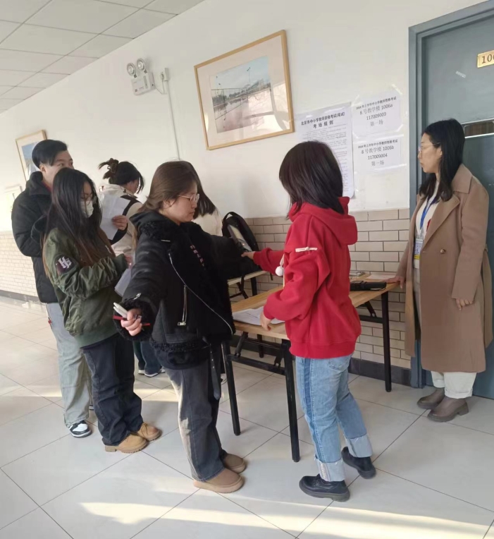3月9日,2024年上半年北京市中小学教师资格考试(笔试)在我校中关村校区顺利举行。本次考试,我校三场次、33科目考试共安排考场106场次,校内外考生共2797人次。副校长姜澜担任主考,教学运行与考务中心牵头组织,九个部门协同配合,约150名教职工、安保、后勤、校医等参与此次监考和考务相关工作。